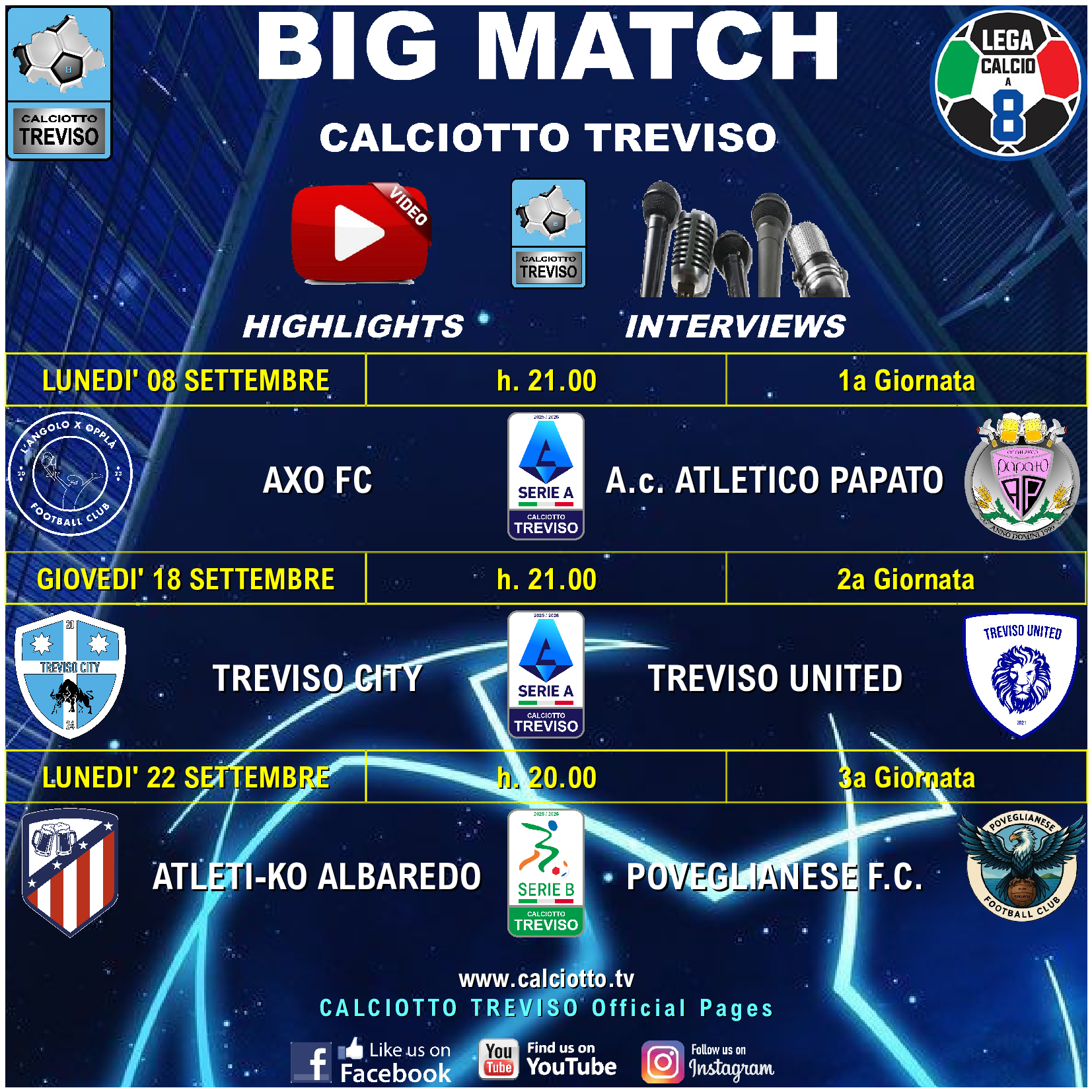 I primi BIG MATCH della stagione! Campionato Serie A Campionato Serie B 3 Settembre 202524 Settembre 2025